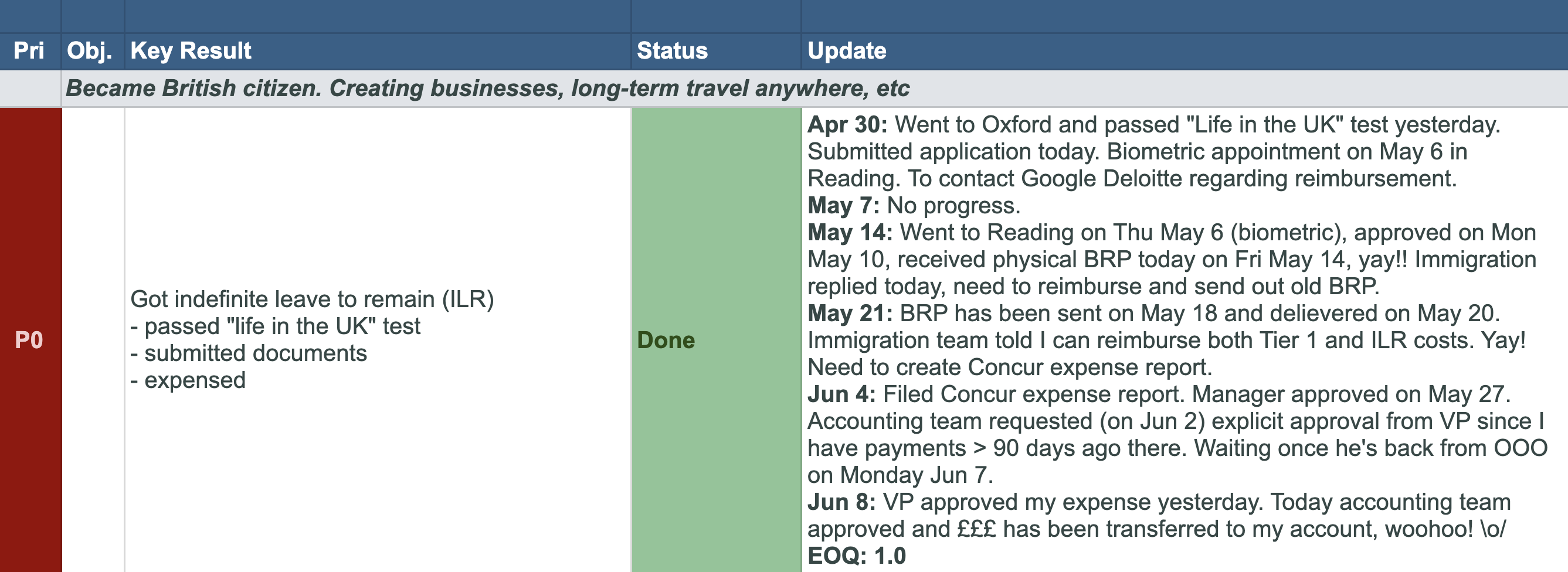 - objective ("Became a British citizen" showing what opportunities it unlocks)